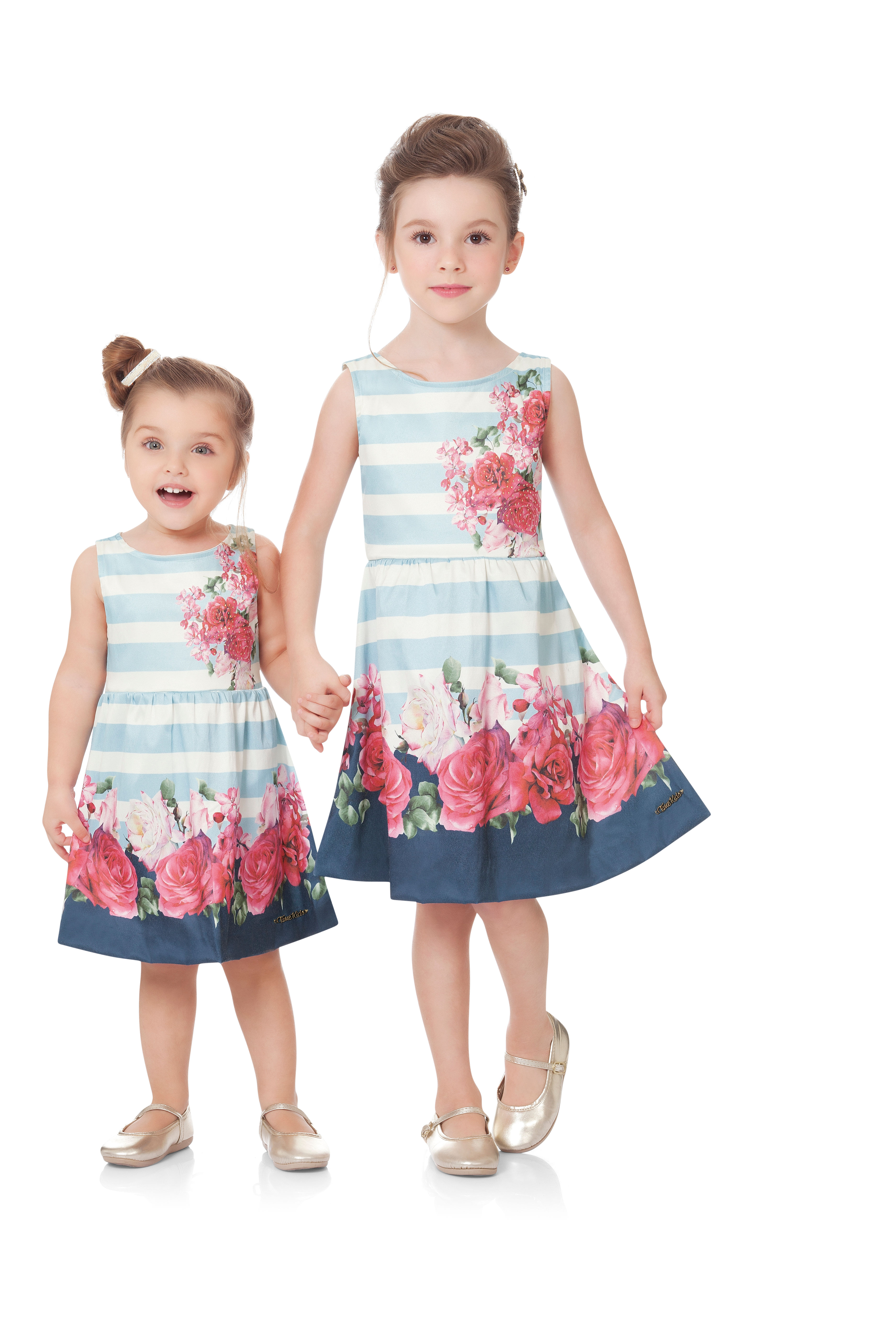 Os conjuntos para as Time Girls chegam com muitas flores, babados e brilhinhos. Assim, as composições ganham muita leveza e um ar encantado, sendo perfeitas para as princesinhas arrasarem em ocasiões especiais como passeios de família, ou aniversários.