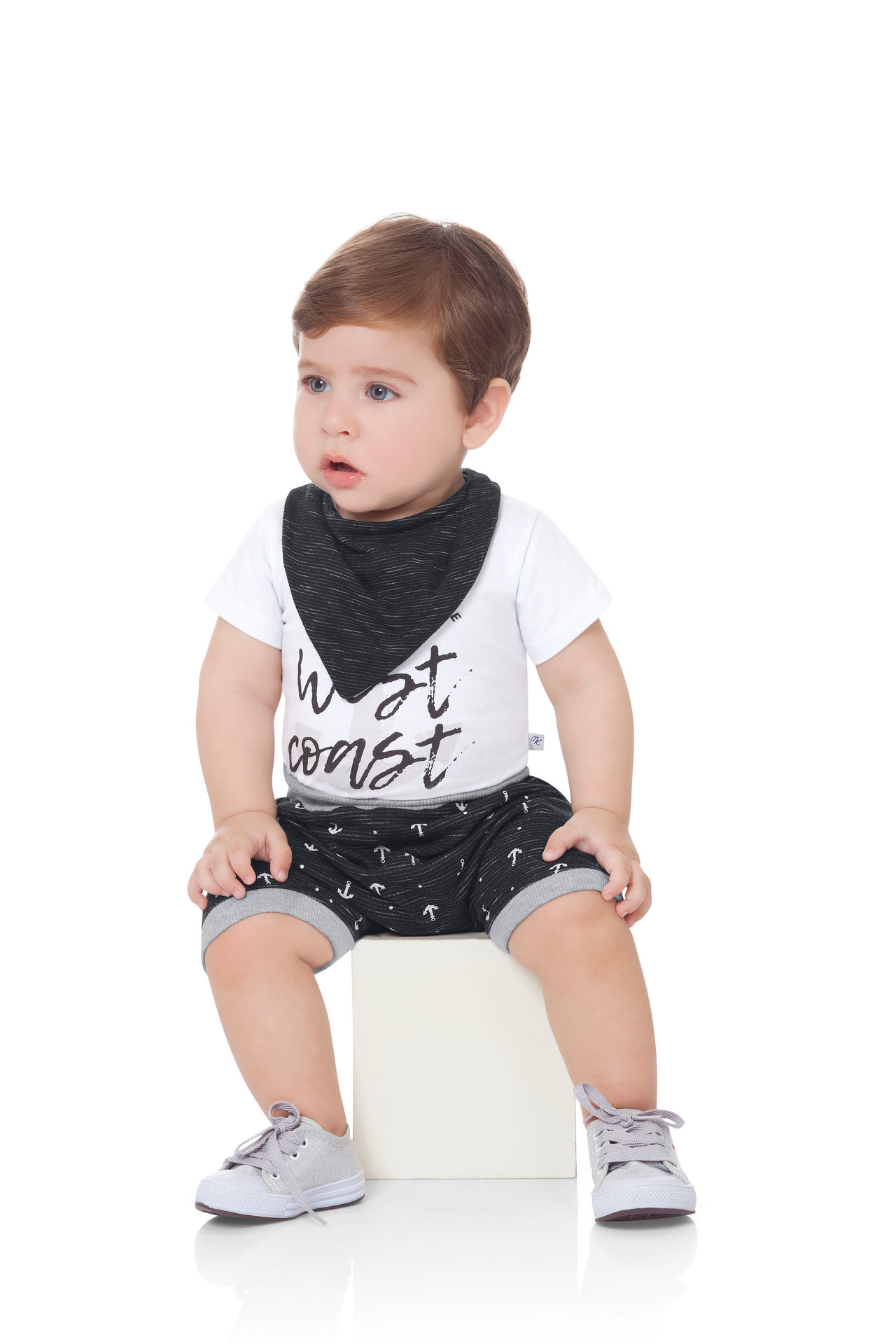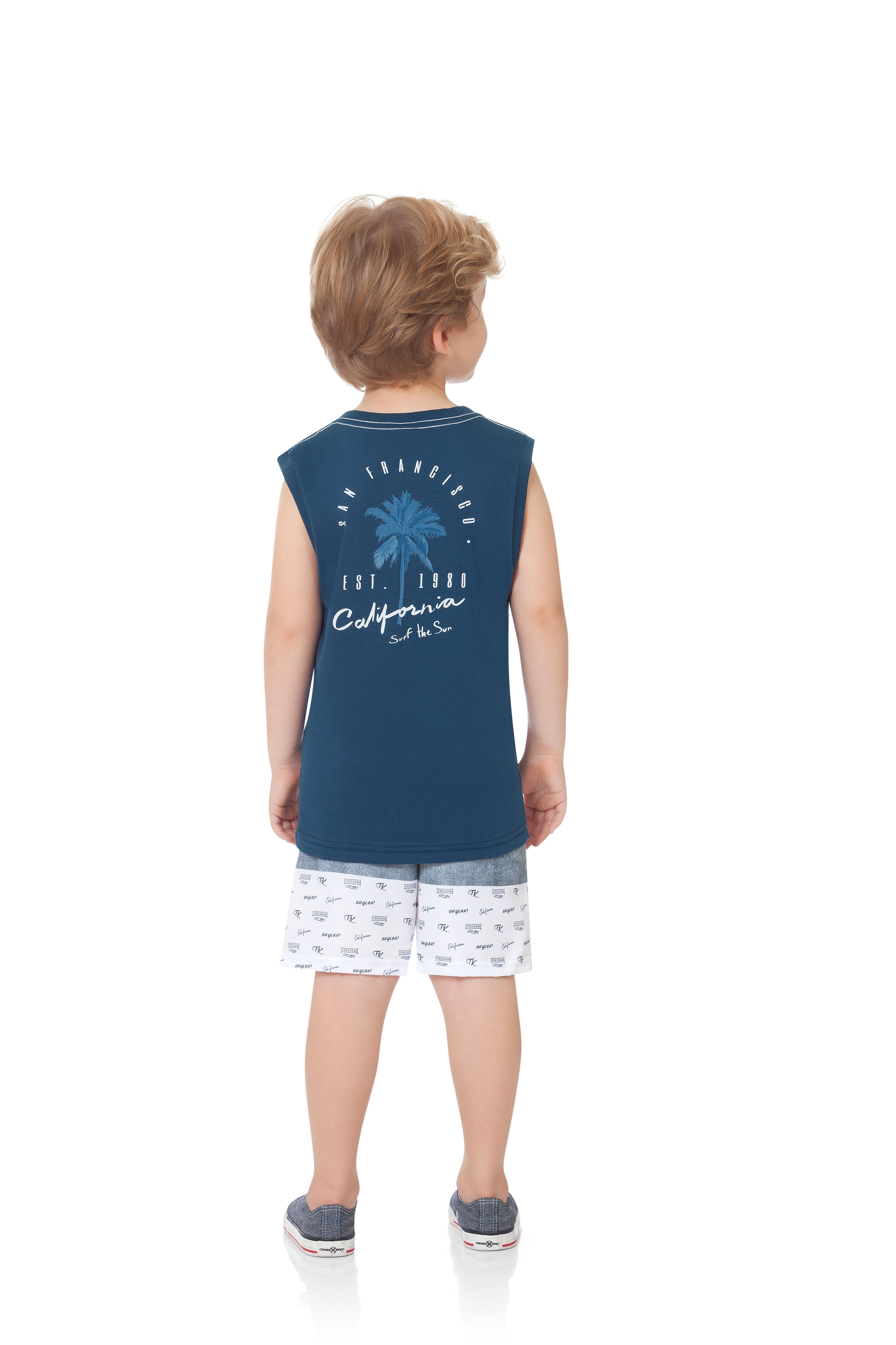 Os pequenos vão ficar uma fofura com os conjuntos, que asseguram praticidade e deixam os meninos bem moderninhos com detalhes como fundo mesclado e estampas variadas, deixando o lookinho mais divertido. Com as regatas e bermudinhas de moletom, o conforto é garantido para a criançada se mover livremente.